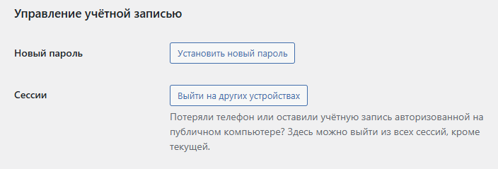 На странице изменения профиля прокрутите страницу вниз, пока не найдете кнопку Установить новый пароль в подразделе Управление учетной записью.