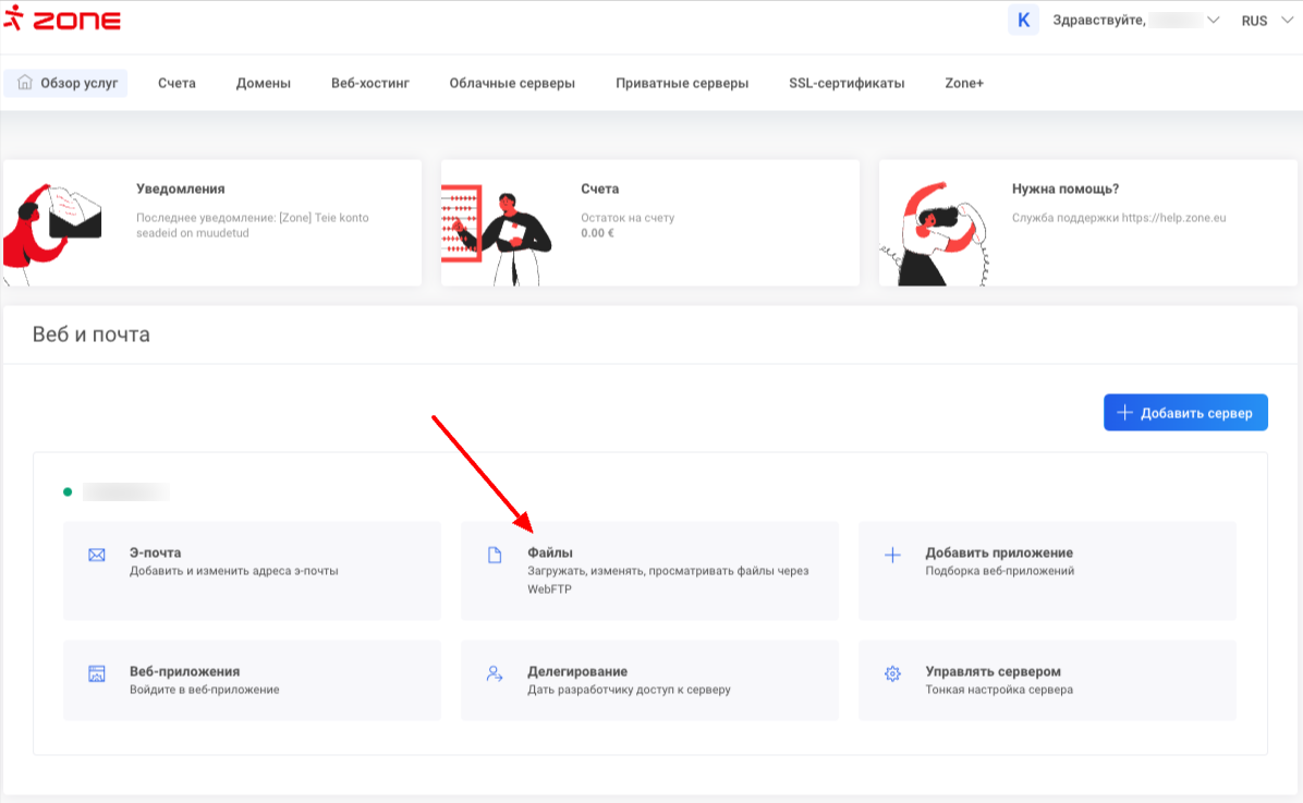 Для этого перейдите в Мой Zone, в разделе Веб и почта  выберите Файлы