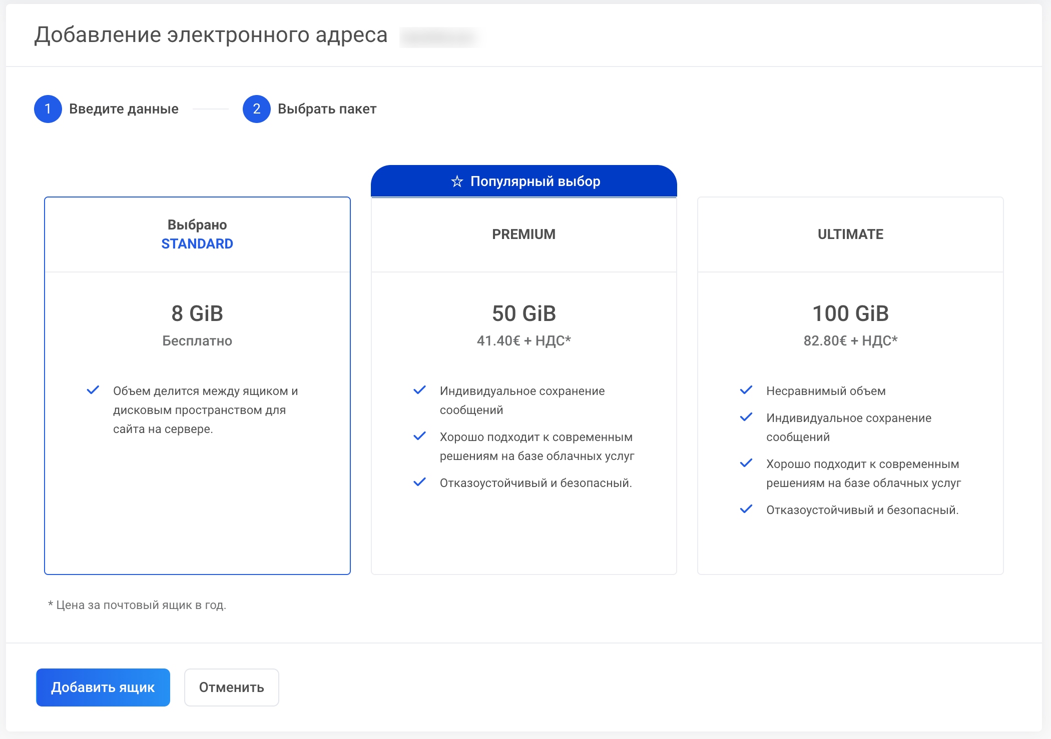 Вы можете узнать больше о пакетах почтовых ящиков Premium и Ultimate здесь.