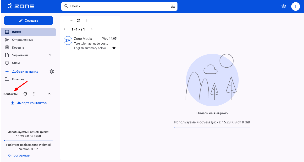 В веб-почте Zone можно добавлять и сохранять контакты.
