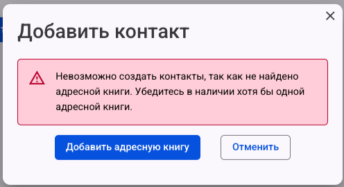 Перед добавлением контакта необходимо добавить адресную книгу.