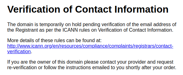 В связи с правилами ICANN данные доменного имени требуют подтверждения.