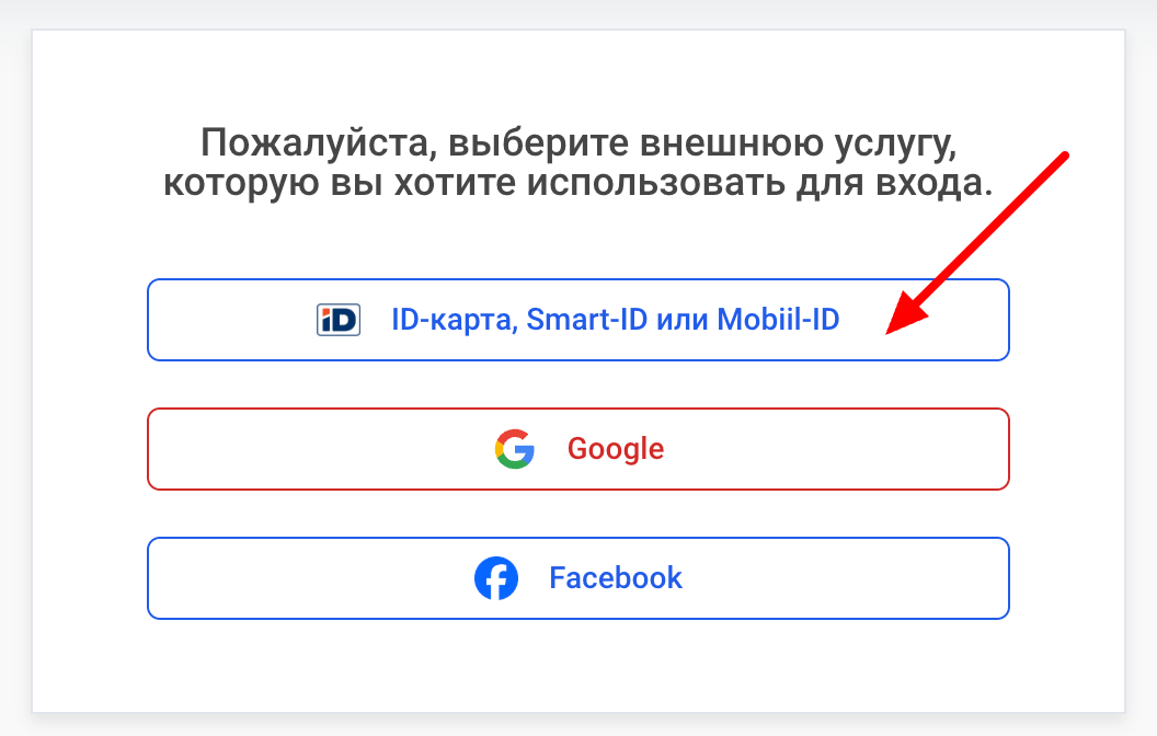 Нажмите ID-карта, Smart-ID или Mobiil-ID.