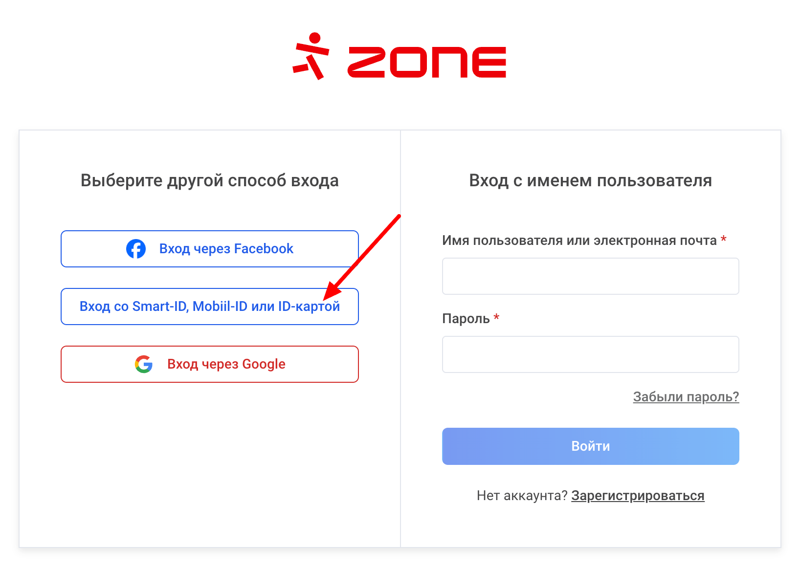 Чтобы войти с помощью Mobiil-ID, выберите Мой Zone в правом верхнем углу сайта Zone.