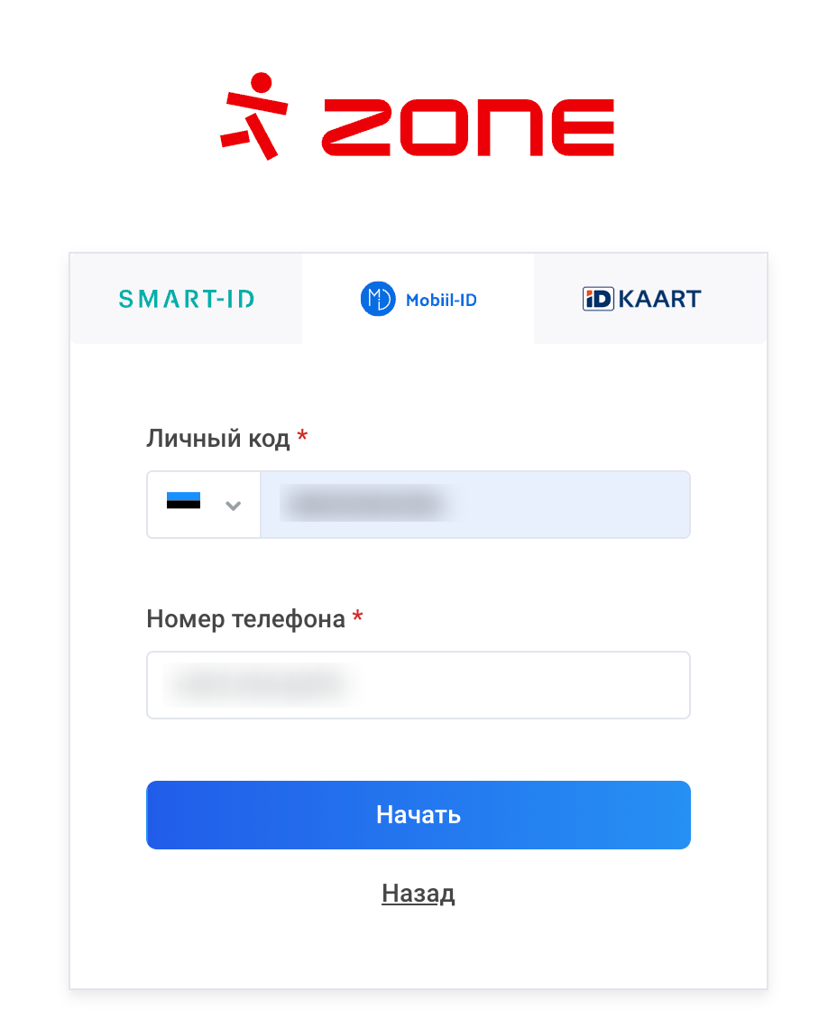 Для того, тобы войти в систему с помощью Mobiil-ID, вам необходимо сначала привязать его к своему аккаунту ZoneID в качестве средства аутентификации.