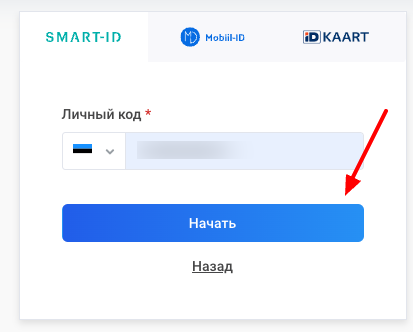 Нажмите ID-карта, Smart-ID или Mobiil-ID.
