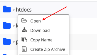 В WebFTP откройте каталог htdocs для приложения находящегося на главном домене. Если это поддомен, откройте каталог с названием поддомена.