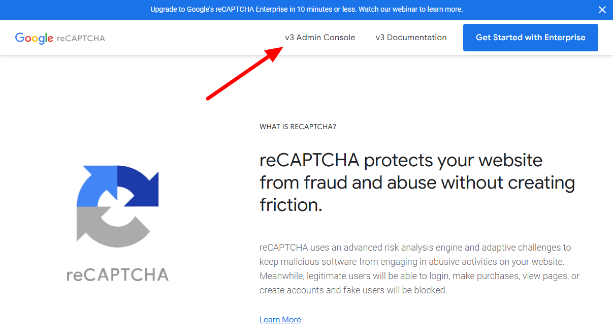 Чтобы защитить формы с помощью Google reCAPTCHA, войдите в панель Google reCAPTCHA.