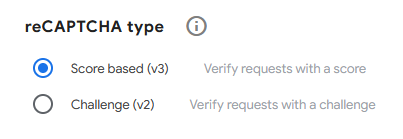 В качестве типа CAPTCHA выберите Score based (v3).