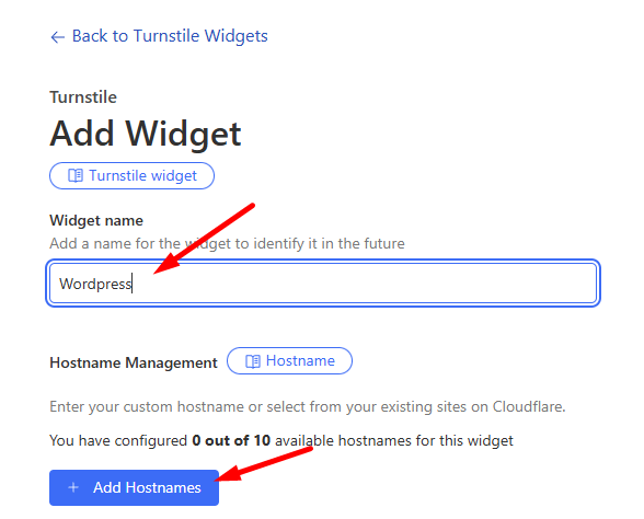 В разделе управления Turnstile добавьте новый виджет CAPTCHA.